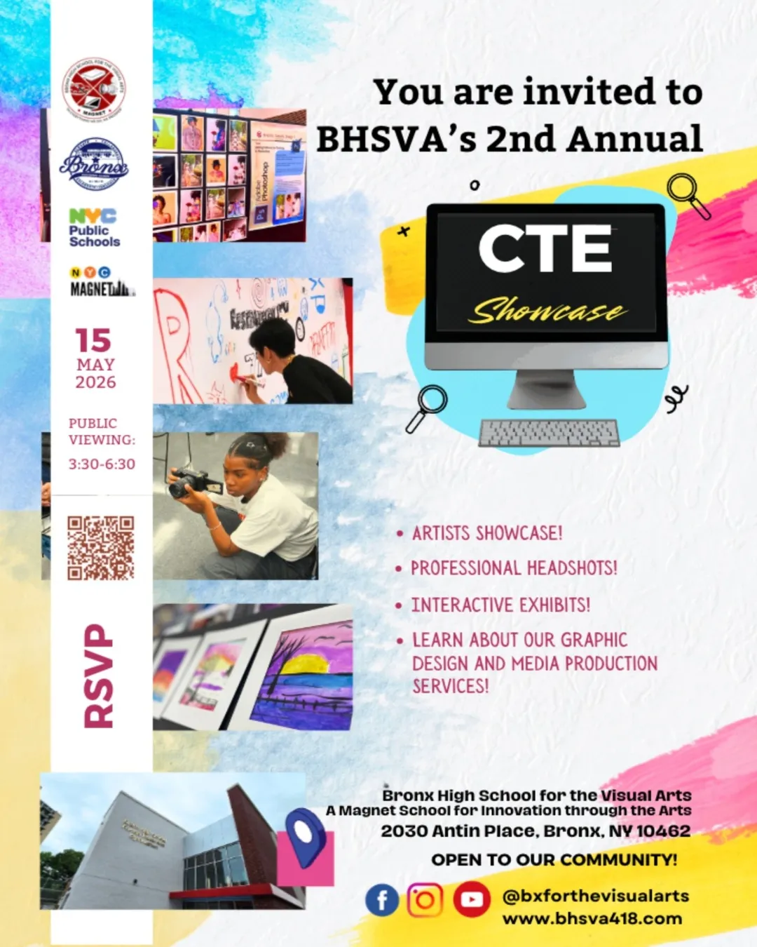 Whether pursuing a Career and Technical Education (CTE) endorsement in Media Production or Graphic Design, engaging in PSAL sports, participating in student government, or excelling in our literacy programs, our community thrives through collaboration and dedication. Together, we celebrate creativity, passion, and artistic expression, ensuring that each student’s journey is not only supported but also elevated within an environment rich in inspiration and opportunity.